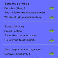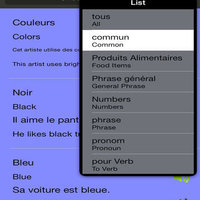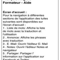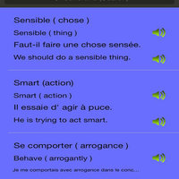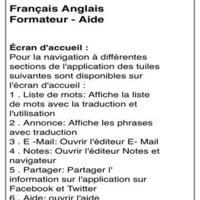 Application possède un dictionnaire intégré d'environ 3000 mots avec la traduction du français à l'anglais et de l'anglais à l'usage du français et de l'échantillon dans des phrases pour faciliter l'apprentissage.