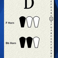 The front side of the card displays the note on the music staff, and the back side displays what note it is and where to play that note on both the F and Bb Horn.