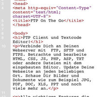 All the features of a desktop FTP client and code editor combined! View and edit HTML/CSS/JS/PHP/ASP, or other files on your server with its built in editor to change your website from anywhere. View images and documents (JPG, PDF, DOC, XLS, PPT, etc) too.