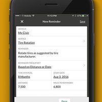 • Customizable service reminders, with presets like oil changes, tire rotations, and more