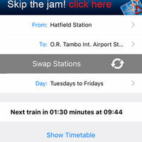 Find your nearest Gautrain station and bus stops. View peak & off peak timetables to plan your day and calculate estimated trip-, parking- & bus fares.