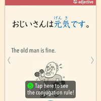 This feature lists the rules for all 28 conjugation types covered by the app, enabling you to quickly look up the way to form conjugations such as the passive, the causative, the causative passive, and the tricky te-form.
