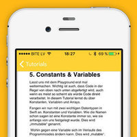 In den Tutorials wird erklärt wie sich Swift-Programmcode zusammensetzt und die Unterschiede zu Objective-C erklärt. So lernst Du, wie Du einzelne Module programmieren kannst, die Du dann zu deiner persönlichen App zusammenstellen kannst! Des Weiteren wird es immer neue Updates geben