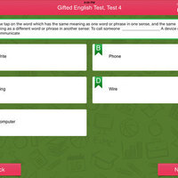 This App is designed to enhance children's critical thinking skills, higher order reasoning ability and verbal sensitivity. This app assesses the skill sets such as word analogies, verbal sequence and classification, and double meaning words etc. There are in total 5 tests including 50 questions from all the above skill sets. Detailed explanation for each question is provided when reviewing the test result. Questions will be shuffled when students need to reattempt the test. This App equips children with right skills for Gifted Education Test, High Ability Selection Test, and General Ability Test.
