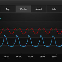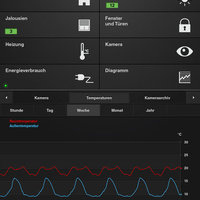 Diagrams enable the clear display of detected and evaluated consumption data by year, month, week, day or hour. If the unit is turned by 90°, the last active diagram appears in the horizontal format. Temperature differences, for example, can be visualised via multi-touch.