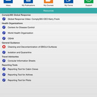 Comply365 gives Global Response app users fast and easy access to consolidated information and basic response training on Ebola, compiled from the world’s leading health, safety and emergency response organizations. Organized for quick reference, the information and training is designed for professionals who work directly with the general public, or for anyone concerned about the Ebola crisis who desires to know more.