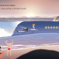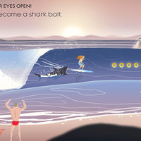 Be careful however, throughout this beach-themed adventure you have to avoid a series of pitfalls. Crowds will attempt to get in your way, wipeouts are most certainly a hazard, and watch out for that which lurks beneath the water’s surface. Remember, the experienced surfer doesn't ever want to become shark bait.