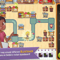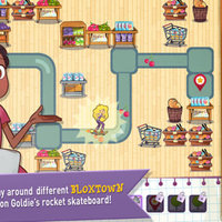 - Zip around 3 locations: grocery store, kitchen, and Bloxtown on Goldie's Rocket Skateboard