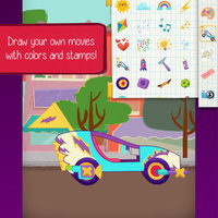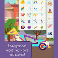 Make your own movies with GoldieBlox and the Movie Machine! Draw, color, sticker, and photograph your way into the Bloxtown film festival by animating your own digital shorts with just a little innovation and a flick of the finger.