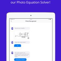 Stuck on a homework problem, test question, or assignment and need to solve the problem right away? We’re the ONLY app that guarantees you Math, Physics, Chemistry help whenever you need it - 24x7, anytime, anywhere. Take a photo of your problem with our FREE Photo Equation Solver, and instantly get a step-by-step solution. Photo Equation Solver is free to use and unlimited so you can stress less and save time figuring out a problem. Need additional tutoring help? Get a quick 1:1 tutoring chat session within 30 seconds with a Study Expert tutor. We make it really easy for you to stress less, save time, and get better grades!