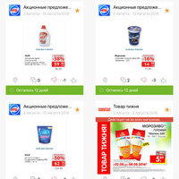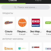 - Акции более 200 торговых сетей (более 8000 магазинов) Украины: АТБ, Сильпо, Varus, Billa, Эко-маркет, Велика Кишеня, Novus, METRO и многие другие