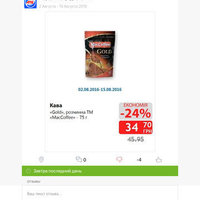 - Добавление понравившейся скидки в Избранное и возможность отправить список товаров на электронный ящик.