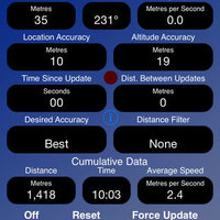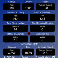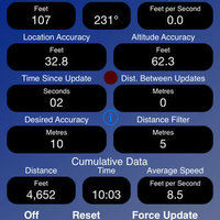 See latitude, longitude, bearing, course, speed, altitude and device accuracy in a number of different formats and units of measure.