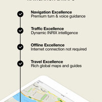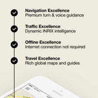 Full-fledged voice-guided turn-by-turn, now with dynamic traffic data (upgradeable), alternative routes, speed limit display, text-to-speech & top-notch pedestrian navigation, etc.