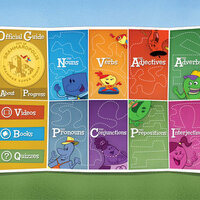 Every part of speech has its own neighborhood that includes a curriculum map with songs, books, videos, and quizzes. Follow the map to earn your badge! The Complete Edition comes with the following neighborhoods: