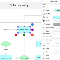 You can create basic shapes and connections very quickly thanks to the freehand drawing recognition. For complex drawings, there are hundreds of ready-to-use stencils on the toolbox that can be easily dragged to the canvas. Most of these stencils are not just static images, but complex objects with plenty of properties setting up their appearance and behavior in the designer.
