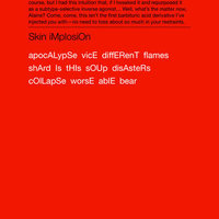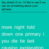Grayout simulates the experience of having a word on the tip of your tongue, the frustration of knowing what you mean but not how to say it, the feeling of being overwhelmed by the runaway thoughts inside your head and struggling to reign them in.