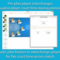• Use our AutoPlan feature to easily plan player interchanges for an entire match