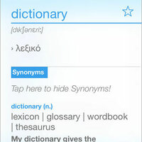 The leading Greek English Dictionary and Translator for iPhone, iPad & iPod Touch * Selling over 500,000 dictionary apps * More than 29,000 translation pairs * High quality English & Greek speech engine (via In-App Purchase) * Integrated Google/Bing Translate * Phrases & Synonyms * No internet connection required (except Google/Bing Translate & Wiki search)