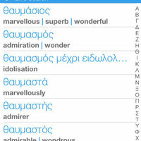 - Speech in detailed view: clicking on any word will pronounce you the selected word or phrase (High quality English and Greek speech via In-App Purchase. Need to pay only once/language!)