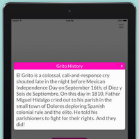 Use ¡Grito! to celebrate Mexican culture! There are six gritos, or shouts, that you can play from the app and download for yourself, along with tips to help you with your very own grito!