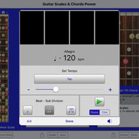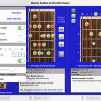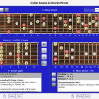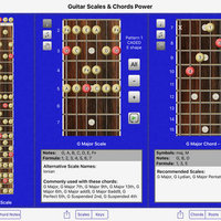 Scale and chords are shown in positions or all notes, covering the fretboard in any key. Notes can be displayed showing the letter name, interval and fingering. Chords and scales can be played at the same time allowing you to hear how a scale sounds played over a chord.