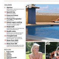 Every month H&E naturist is packed with a host of features on practically every aspect of the naturist lifestyle around the world. Every issue carries an updated UK & Ireland club and swim guide and What's On listings, plus regular columns on France, Spain and Portugal, nude-related film and book reviews, and a Q&A column which aims to answer readers' questions about naturism, whether they be common or more unusual inquiries.