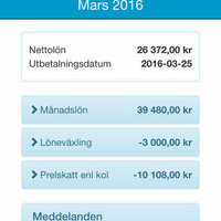 I appen MinLön ser du löneuppgifterna ett år bakåt, och med tilläggsfunktionen Preliminär lön även den kommande löneperiodens uppgifter. Du väljer själv detaljnivån på varje transaktion då möjlighet finns att visa flera nivåer.