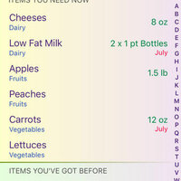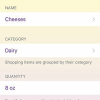 Tick off items while shopping at the store with a simple tap or swipe. Items with the same category are kept together, making them easier to gather all at once. Adding your own categories or changing an item's category is a cinch.