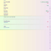 It's quick and easy to add the items you need to your list. Just select from your previous list (i.e. items you've shopped for before), or search the preloaded list using the add filter, or create a brand new item.