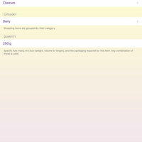 Specify an item's quantity (including size and packaging) using Hexaget's quantity editor. Preloaded items include appropriate default size units (weight, volume or length) and packaging. if you wish, you can add your own custom packaging.