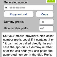 Set your prefix code based on your location(country). The code will be generated. If it contains # or * only a dummy number will be called. After the dummy call ends, you can paste the code in the dialer!