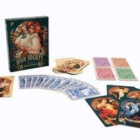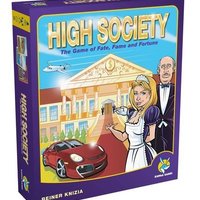 In Reiner Knizia's High Society, players bid against each other to acquire the various trappings of wealth (positive-number and multiplier cards) while avoiding its pitfalls (negative number and divisor cards). While bidding, though, keep an eye on your remaining cash - at the end of the game, even though all those positive-number cards might add up to a win, the player with the least money isn't even considered for victory.