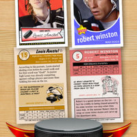 Starr Cards Retro 75 series is the primary card design within the Hockey Card Maker — its throwback look is the perfect fit for a youth hockey league, prep player, college team, or hockey fan of any age.