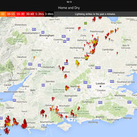 Real time lightning strike maps, alerting of nearby strikes and lightning risk forecast maps for the next three days ahead.