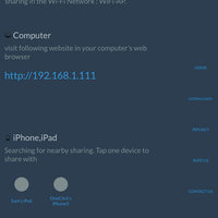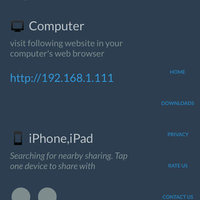 This app helps you to transfer photo, video and file among iPhone/iPad and Windows/Mac Computer, Apple TV. Features include: * It will help you to share photo, video and file to computer, Apple TV from iPhone/iPad * It will help you to upload photo/video/file to iPhone/iPad from computer . * It will help you transfer photo, video and file from one iPhone/iPad to another * Upload photos, videos and files are auto saved to the right place. * Keep metadata and raw data * Provides custom Access Control policy Requirements: * join the same Wi-Fi network * Works better with compatibility browser