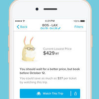 Users save on average $50 per flight by following the bunny’s advice. Know if you should book now or wait for a better price using the price prediction feature.