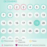 •Exibe as tomadas de pílula, além de oferecer a possibilidade da inclusão de informações sobre menstruação, sintomas, relações sexuais, consultas médicas e anotações individuais;