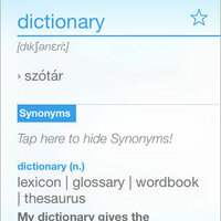 - Részletes képernyő a keresett szó szinonimáival és kifejezéseivel