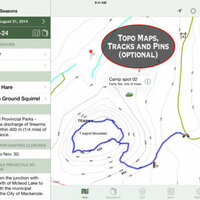 - Mapping Package: Downloadable topo maps. Parks, protected areas, recreation sites and trails. Tracks and pins (waypoints). User configurable map servers. Record tracks and pins using your device's built in GPS. Import / export tracks and pins in GPX format. Note: Continued use of GPS running in the background can dramatically decrease battery life.