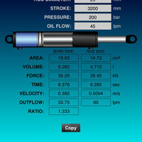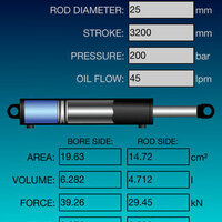 This is a very cool tool for anyone who works with hydraulic cylinders. It can be used to calculate areas and volumes within the cylinder. Extension and retraction forces, times, velocities, and outflows can be calculated.