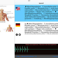 It includes all common heart-, lung and bowel sounds (murmur), playable with detailed medical description and auscultation-points, as well as all ICS (Intercostal spaces) and a realtime visual sound spectrum and detailed disease patterns, which no other app. includes !!