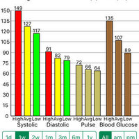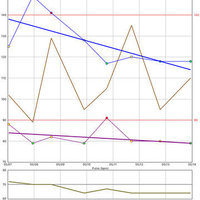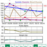iBP uses color icons to indicate when your blood pressure values are normal, high, or hypertension. It also provides interactive graphs that allow you to display your values by weeks, months, year and time of day. The graphs display lows, highs, averages, and trend lines using statistical analysis.