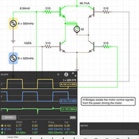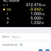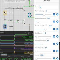 The app features a multimeter that you use to probe around the circuit to instantly read voltages and currents. If you want to see how a value changes over time, then you can add values to the built-in oscilloscope. The scope can simultaneously track many signals over time and features a touch interface to control the total time displayed and stacked and unstacked modes to easily compare signals.