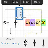 iCircuit is the premier iPad and iPhone app for designing and experimenting with circuits. Its advanced simulation engine can handle both analog and digital circuits and features realtime always-on analysis. It is the perfect companion to students, hobbyists, and engineers.
