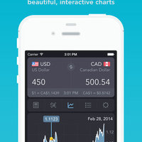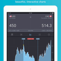 Detailed charts show the history of exchange rates for any two currencies. Tap on the chart for the exchange rate on any particular day. Tap with two fingers to show the change in rates between any two dates. Rotate the device for a larger chart in landscape view. Charts for most currencies are available for 1-day, 5-days, 3-months, 6-months, 1-year, 2-years, 5-years and 10-years.