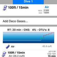 Open Circuit - Scuba : Supports Air to TriMix (any combination of O2/He/N2), with an unlimited number of decompression gases. Includes Thirds support for planning dives.