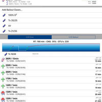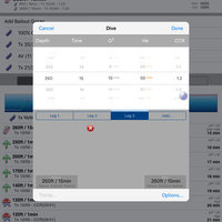 Closed Circuit (CCR): Supports any O2/He/N2 combination for diluent. Automatically generates bailout plans based on entry of bailout gases. Features a Cave/Wreck bailout option for overhead environment bailouts and gas planning.