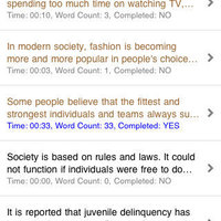 Here is how, when you have a few extra minutes, for example, waiting for a bus or someone, on a short trip or in a boring meeting, etc, you can take out your iphone or ipod touch to start your essay or practice your part 2 speaking topics. For writing, it helps to keep track of your time, your word count, these are key factors in the real test. The cool thing is you can leave it anytime you want. It can save everything you need and you are feel free to continue your essay next time. For speaking, you are provided with a powerful recorder, real test questions and many more exciting features, bringing the similar test experience as if you were really doing the speaking test.