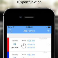 Die simple und klare Übersicht zeigt Ihnen alle Fahrten auf einen Blick nach Datum sortiert und mit Farben indiziert. Durch einen einfachen Tap auf den Export-Button, lassen sich die Fahrten als .csv exportieren und an Ihre e-Mail Adresse senden lassen.